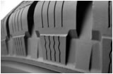 Зубчатое («шевронное») расположение канавок в центральной части протектора увеличивает число граней и ламелей (торможение / тяговые свойства), сохраняя при этом поперечную устойчивость (сцепление в поворотах) |
